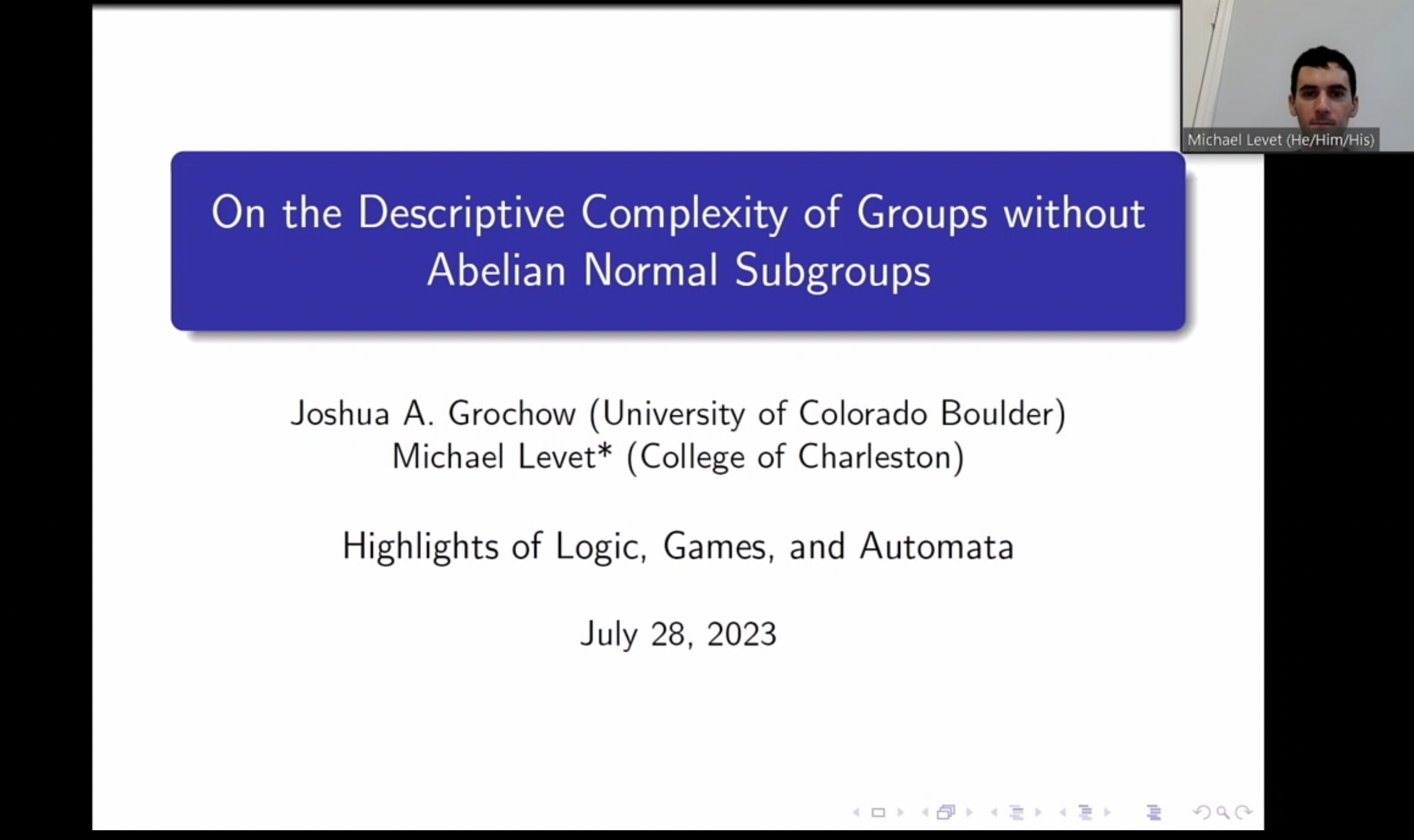 U. Connecticut Logic Colloquium, Jan 2023
