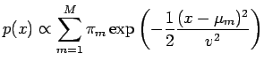 This mixture has M components, each with its own weight, centroid and covariance (π, μ, Σ, respectively).