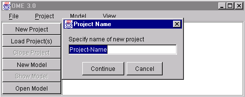 Click on the button named "New Project". This will bring up a dialog requesting the user to type in the name of the new project. (See Figure 2 below.)
