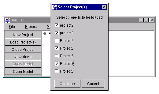 Click on the button named "Load Project(s)". This will bring up a dialog containing a list of the projects available to be loaded. (See Figure 3 below.)