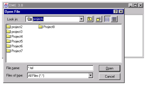 Saved files are stored in .tel files. It is possible to alter these files in order to manipulate the model, without using OME. This practice is not recommended, however. Doing so might corrupt the state of the model.