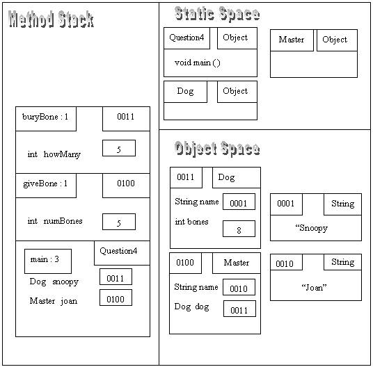 Show your update to the method stack and to the object space by writing on the memory model diagram that has been provided for you on the next page.