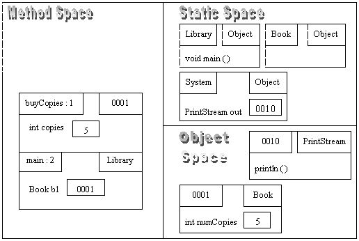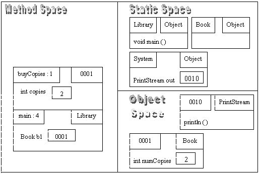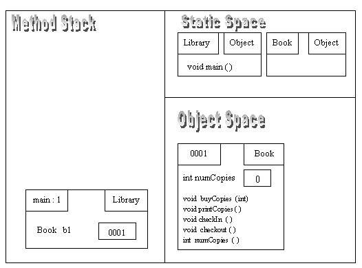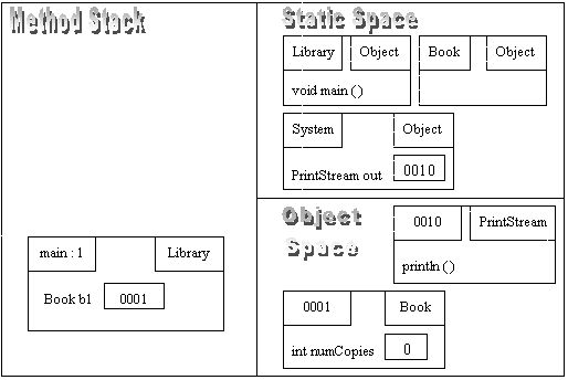 This is what the diagram looks like after executing statement 1 in the main method. We'll discuss how to update this diagram during the lectures.
