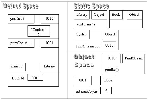 You are not responsible for this, but here is a complete memory model diagram that shows all of the objects that would actually exist. The PrintStream object is needed in order to show how System.out.println is modelled. We would not ask you to model System.out.println for this course.