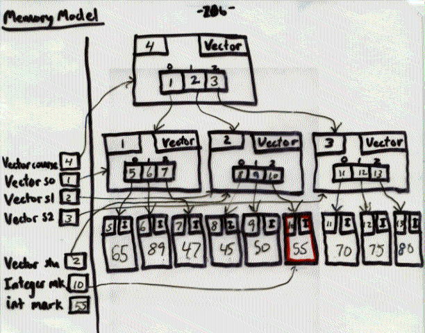 This program is the same as the previous one, except that it doesn't use an enumeration. Instead it uses a for loop that continues for each element in the vector, and it uses elementAt() to retrieve each element.