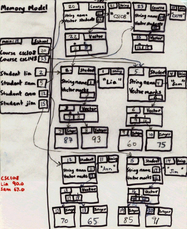 We have a Vector of Students, with each Student containing a Vector of marks. Of course, the nested Vector of marks is "shielded" from the containing Vector by being a member of a protective Student class, but that's not necessary. You can just put a Vector into an element of another Vector if it seems appropriate ...