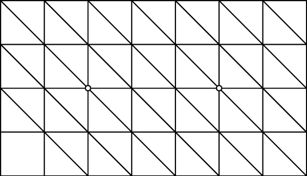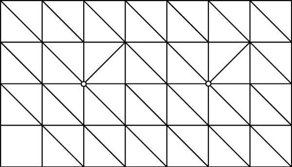 And one with regular positions and the same regular connectivity but a single edge at each highlighted vertex has been flipped: