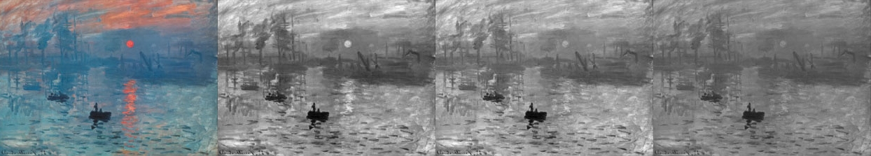 From left to right, compare the original, PCA grayscale, bare "Lightness" L channel, matlab's rgb2gray.