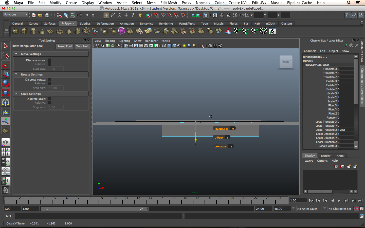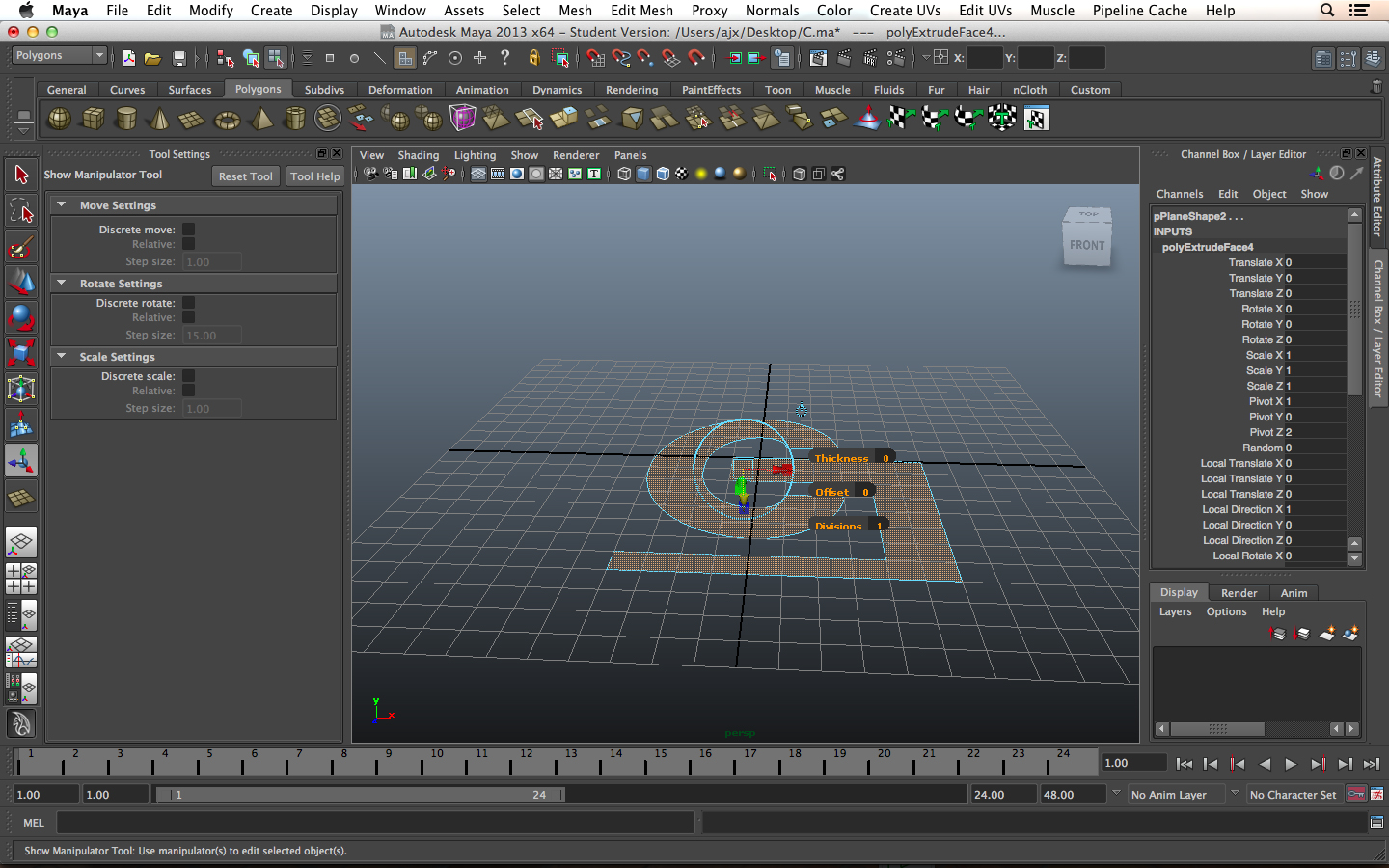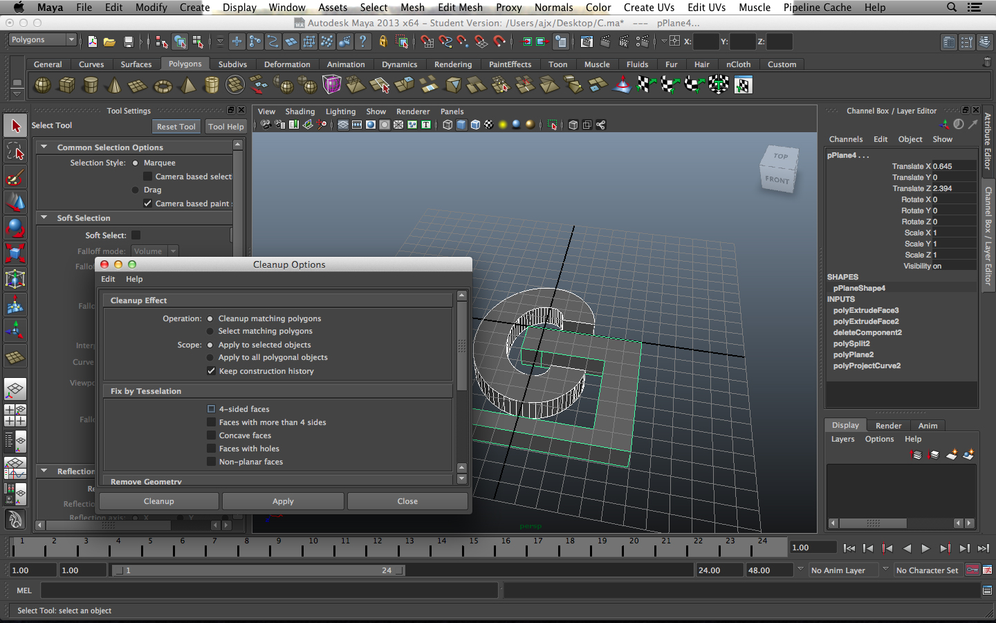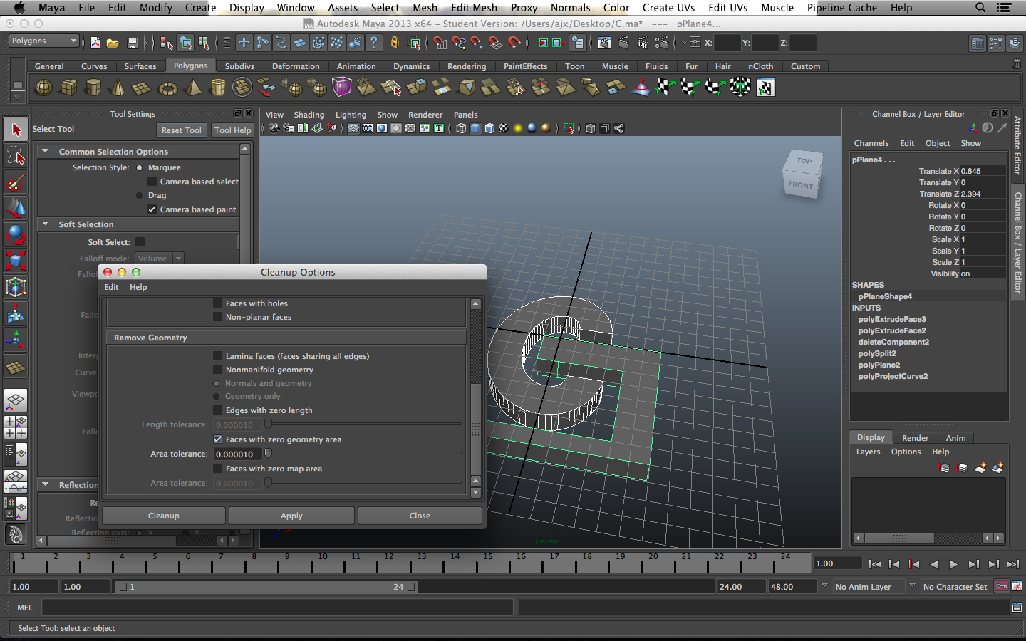 Today I struggled to convince Maya to let me extrude a Bezier Curve into a solid shape (sweep a closed curve and finish with planar end caps). I could used the Surface > Extrude tool to extrude the curve and then select the boundary edges and use the Surface > Planar tool to close the endcaps, but this just creates a group of 3 surfaces which are not topologically connected.