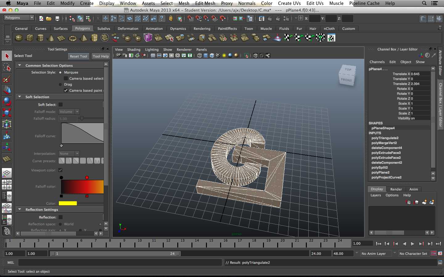 My end goal today was to create something to send to the 3D printer. So in this case I eventually wanted a triangle mesh. Here're the steps I took to convert a bezier curve to a polygonal mesh:
