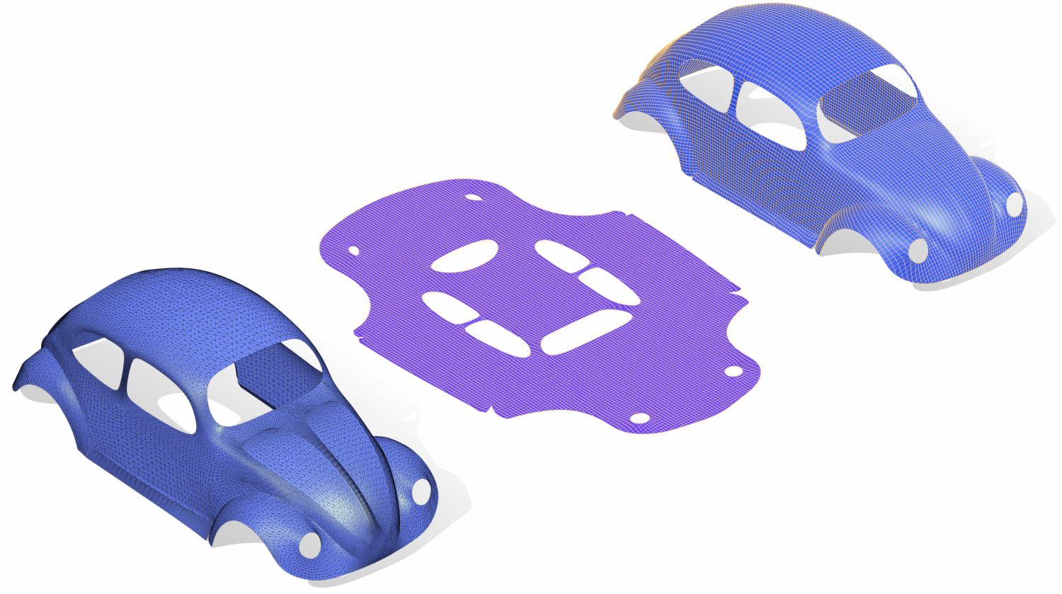 This morning I played around with a very simple way of quad meshing a triangle mesh. This is more or less the "ideal pipeline" for quad meshing via parameterization. It will likely only work for very simple meshes. I'm pleasantly surprised that it works at all.