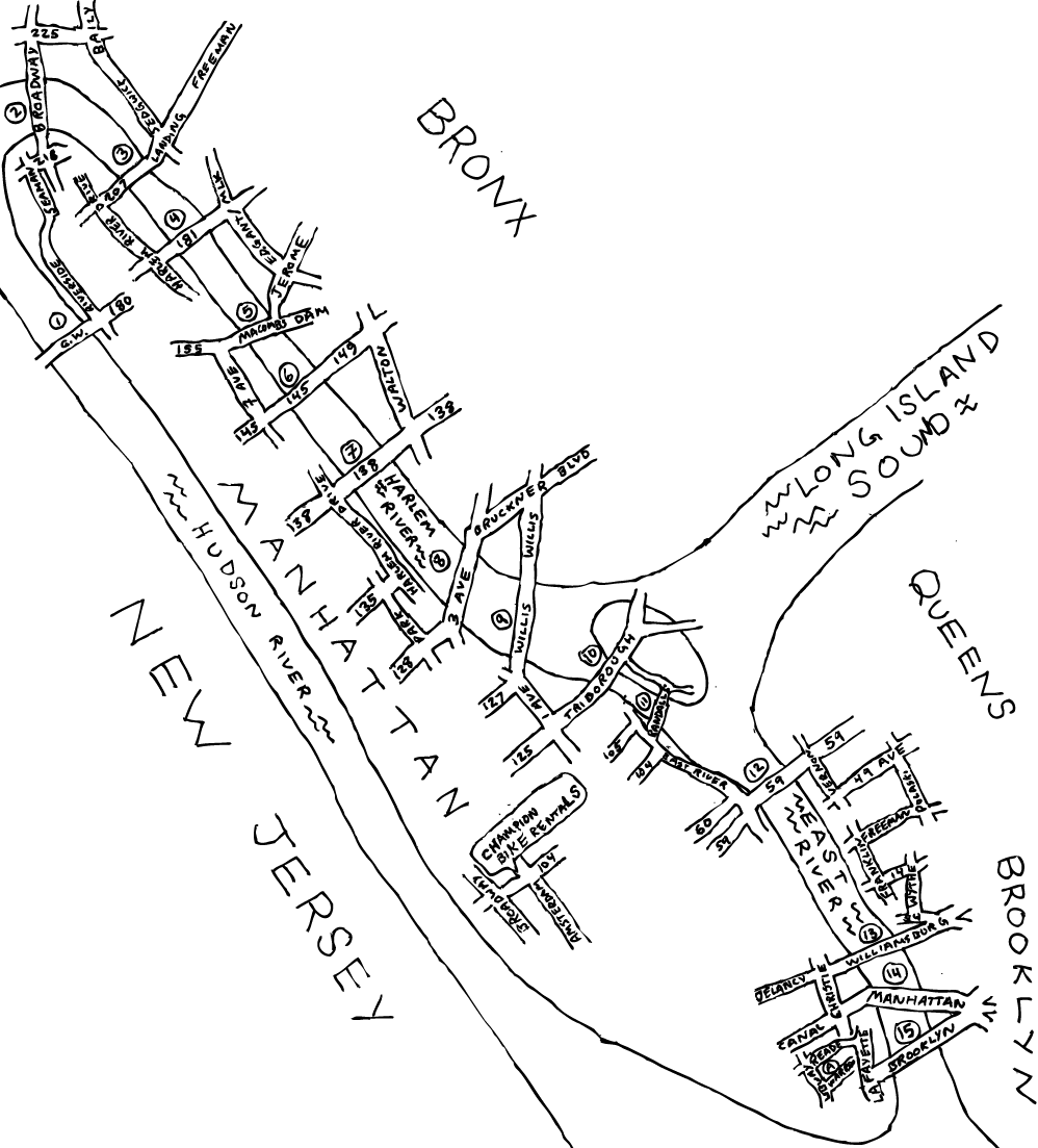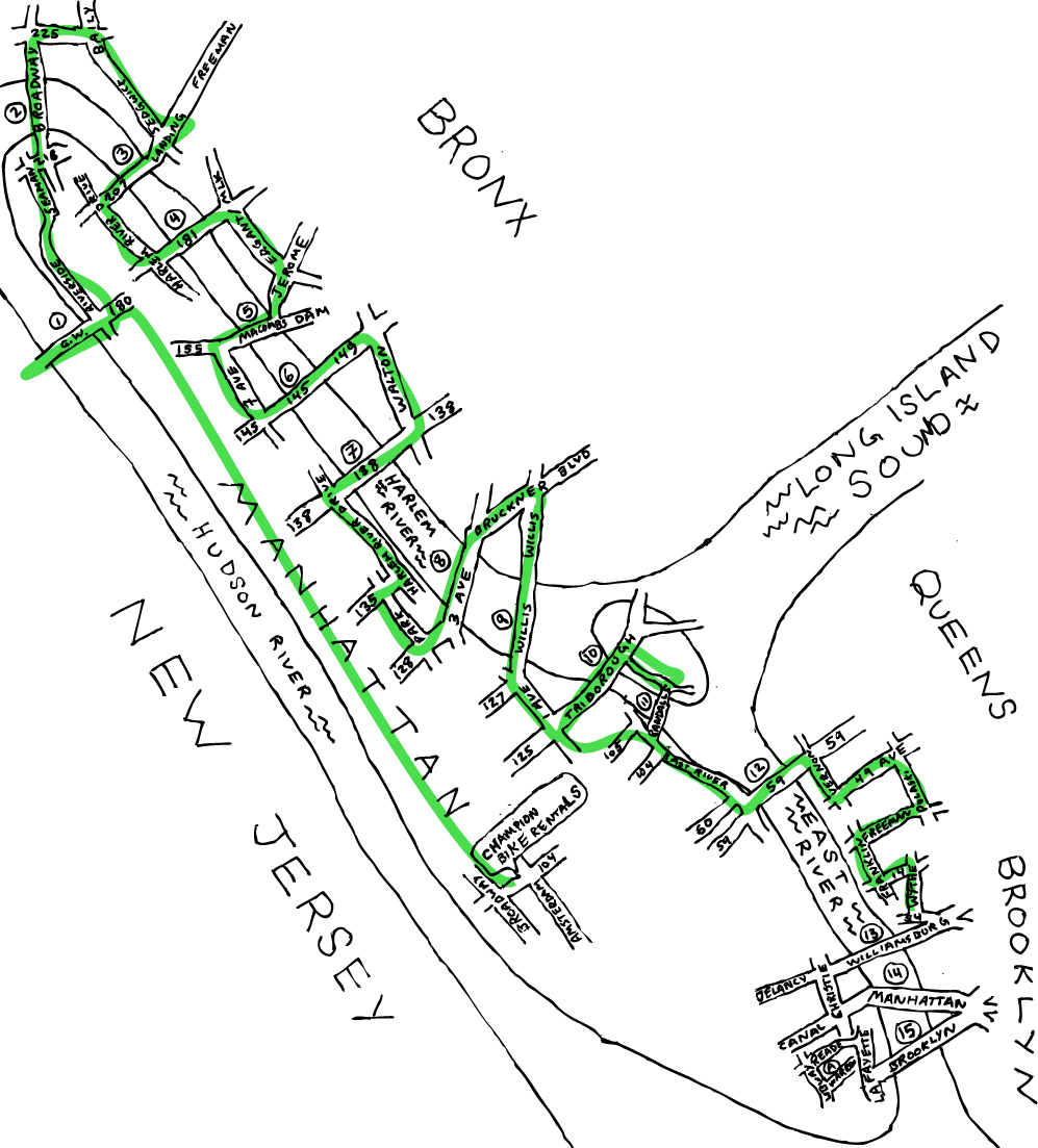 I've had a mind to do an Euler tour of the bridges of New York, specifically those in and out of Manhattan. Yesterday a few friends and I made our attempt.