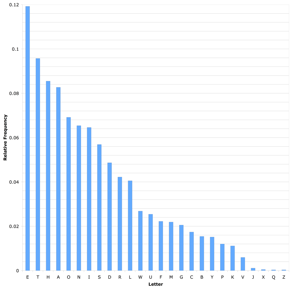 As a freshman at college I took a class called, Randomness and Chaos taught by Mark Nelkin. During the section on power law probability distributions, I remember becoming obsessed with trying to find these in nature. Later when a learned only a little Java programming, I wrote a (albeit horribly inefficient) character frequency counter program that I ran over plain text versions of William Faulkner's The Sound and the Fury and Ernest Hemingway's The Old Man and the Sea. I made some charts with the intention of adding the to the letter frequency wikipedia article, but the wikimilitia users removed them citing that they were "original research". Hardly, I thought. Hardly more than snapping a picture of John Kerry holding a baby is original research.