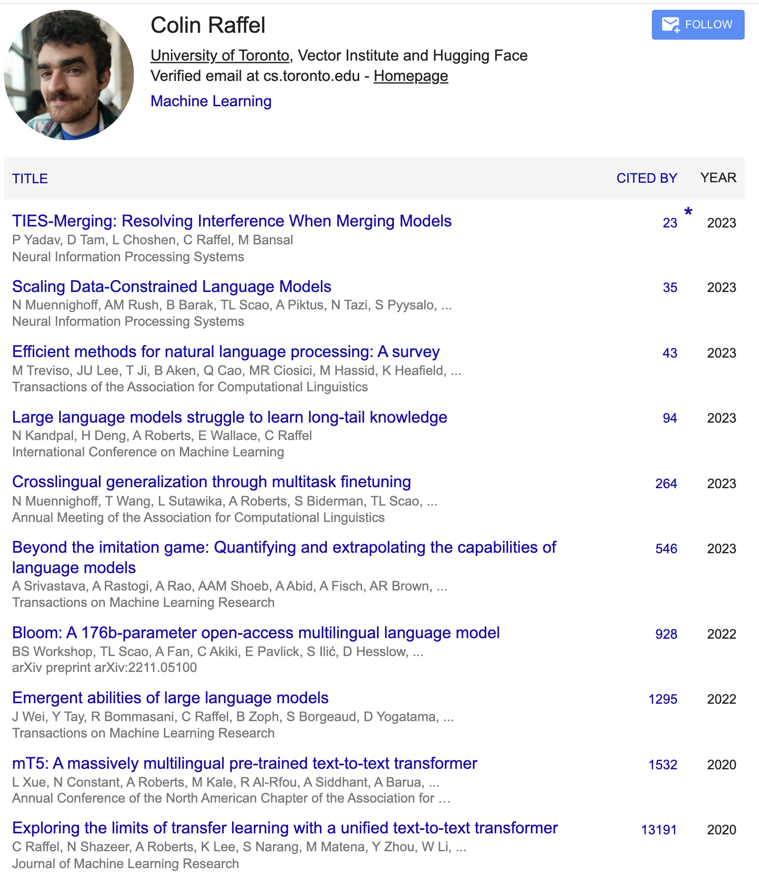 Here's an example of a friend from a different field (ML/NLP), Colin Raffel: