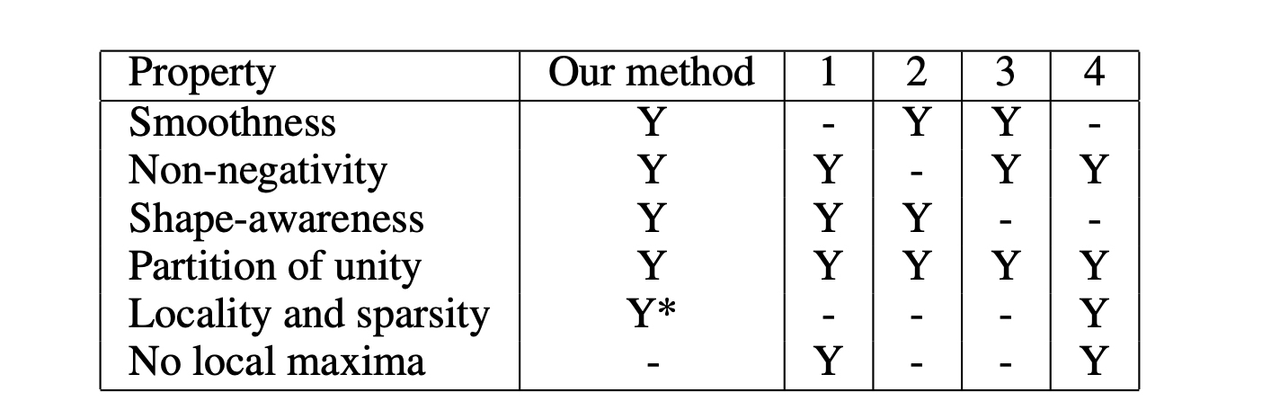 Fortunately, the authors of the no-free-lunch paper were able to add a fourth feature column to the chart: mesh locality. Even more fortunately (for science), they went further and proved a theorem that no method could ever satisfy all four features.