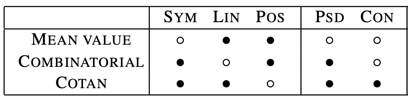 This time there are only three methods and three core features, but still we have no method that satisfies all features.