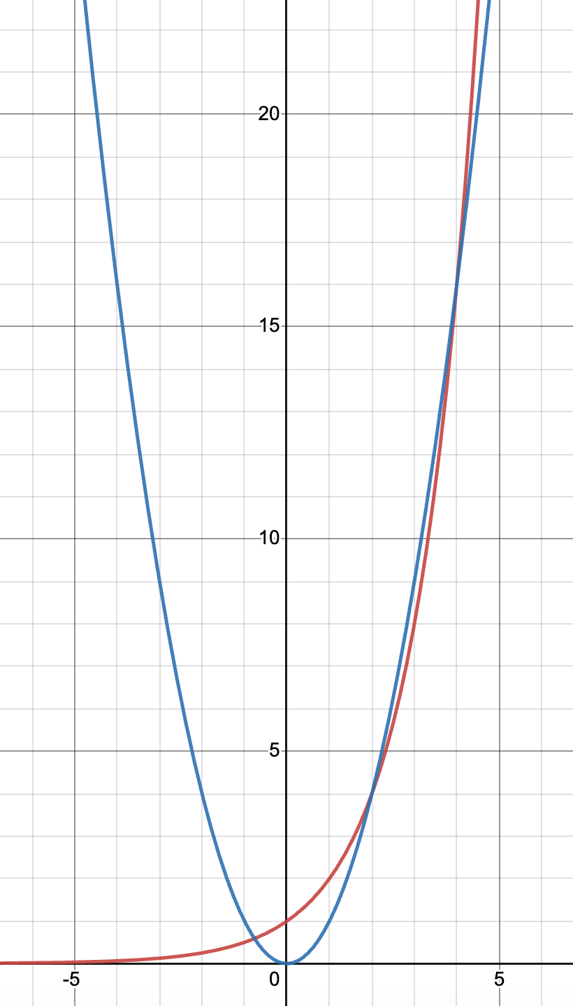 \(\forall n \in \mathbb{N}, n \geq 4.(n^2 \leq 2^n)\)