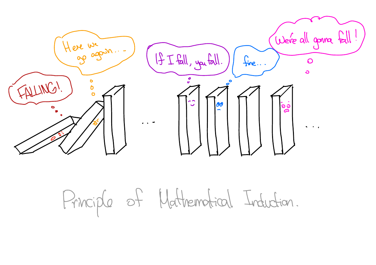 “If I can show that the first domino falls, and I can show that for any domino, if that domino falls, the next one falls, every domino falls”.