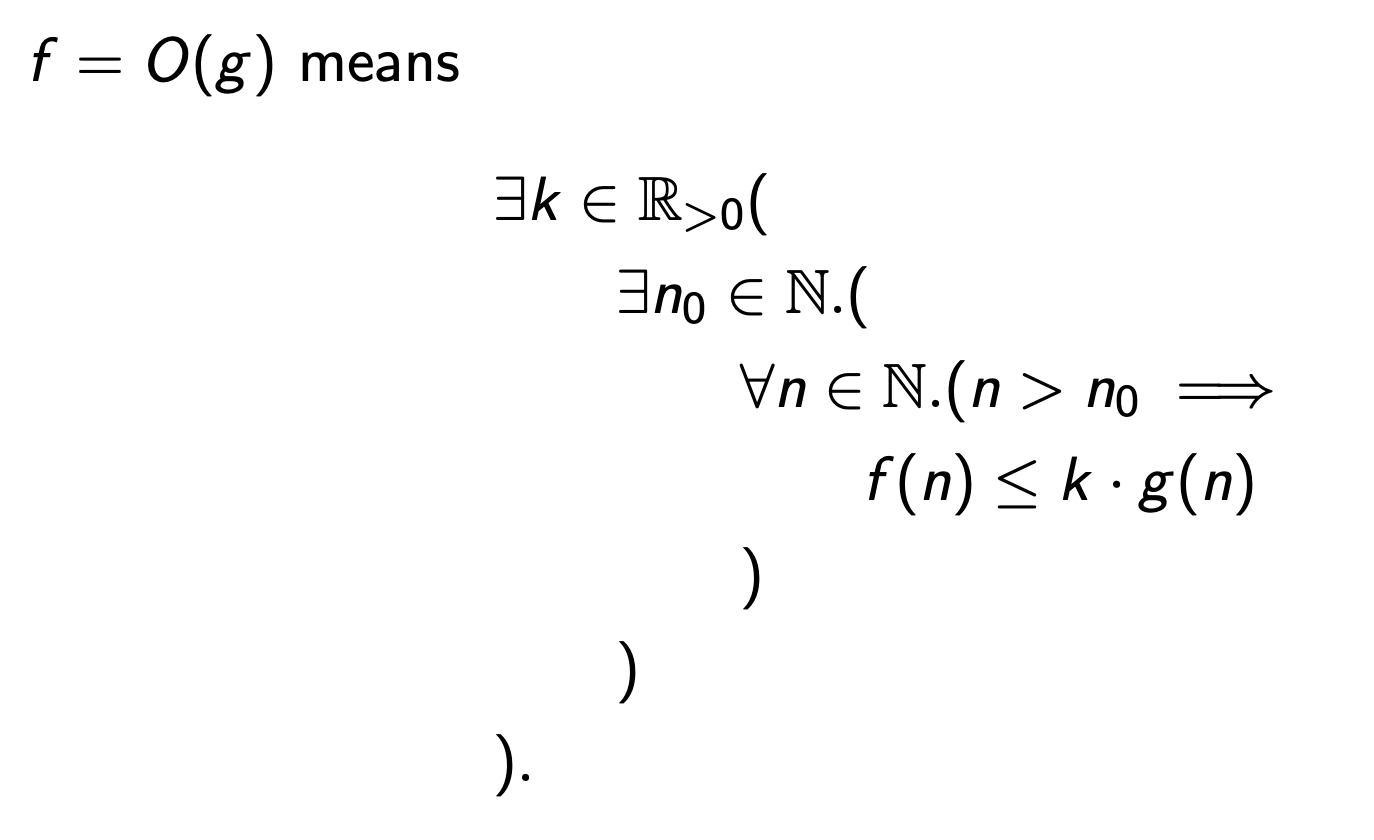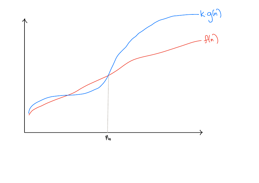 Less formally, \(f\) is at most \(kg(n)\) for large enough inputs, where \(k\) is some constant.