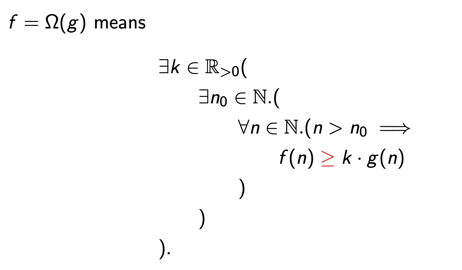Less formally, \(f\) is at least \(kg(n)\) for large enough inputs, where \(k\) is some constant.