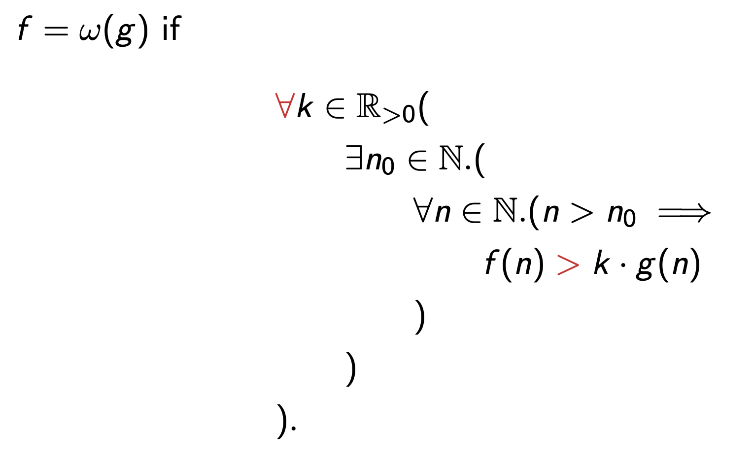 We’ll sometimes use \(\prec, \preceq, \approx, \succeq, \succ\) for \(o, O, \Theta, \Omega, \omega\) respectively.