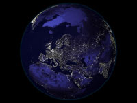 This is our planet. Our spaceship for traveling through the cosmos. It provides a life support system for many different forms of life. Look at all those lights, marking out the places where humans cluster in great cities. Where does all the energy come from to light up those cities? Remember, energy cannot be created or destroyed; it can only be transformed from one kind to another. Right now, most of that energy comes from burning fossil fuels (coal, oil, and natural gas) that have lain buried under the ground for millions of years.